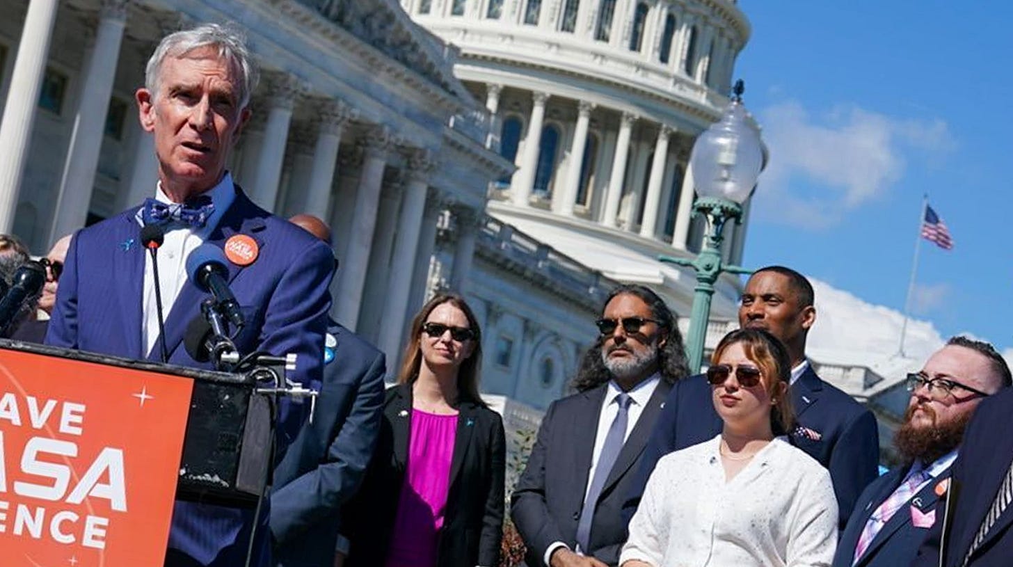 Every living former NASA science chief has sounded the alarm. The Planetary Society, led by Nye, has mobilized more than 300 advocates and 20 partner organizations to lobby Congress and rally public support.
