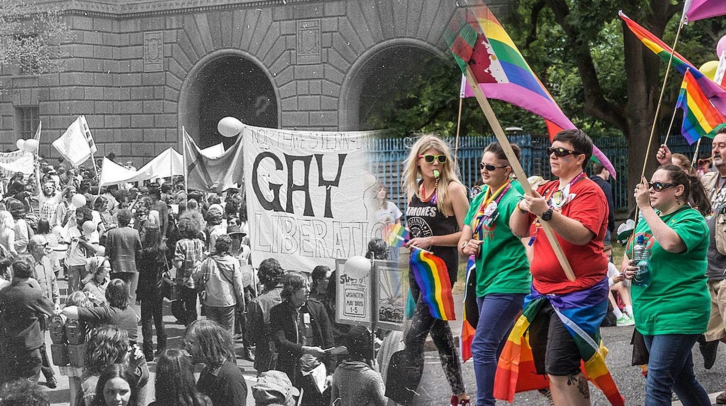 Gay liberation by Skillful654321, own work, under CC BY-SA 4.0 Attribution-Sharealike 4.0 International Deed and DUBLIN 2015 LGBTQ PRIDE PARADE [WERE YOU THERE] REF-106090 by William Murphy, CC BY-SA 2.0.